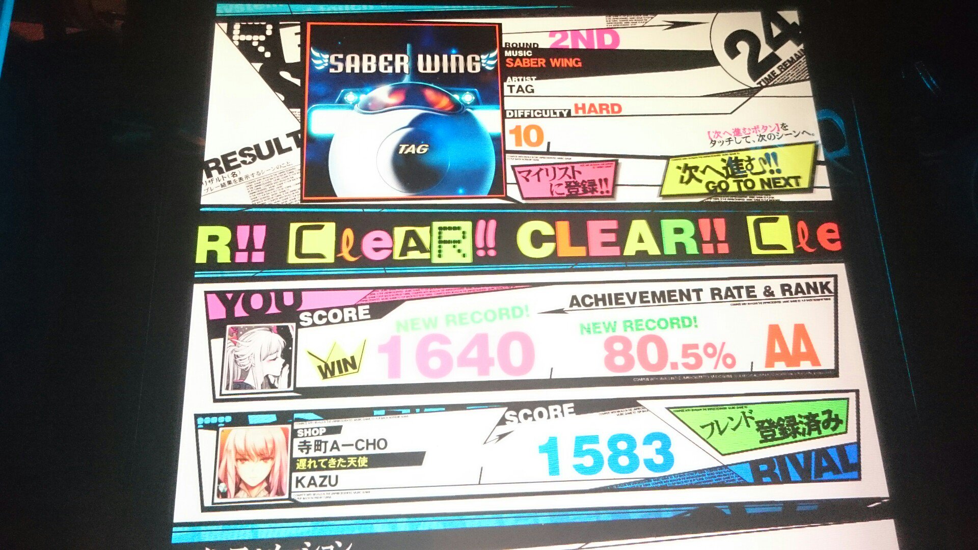 ハードした今になっては1曲目迷ったらSABER WINGってぐらいセイバーになってます(^o^)丿嘘です